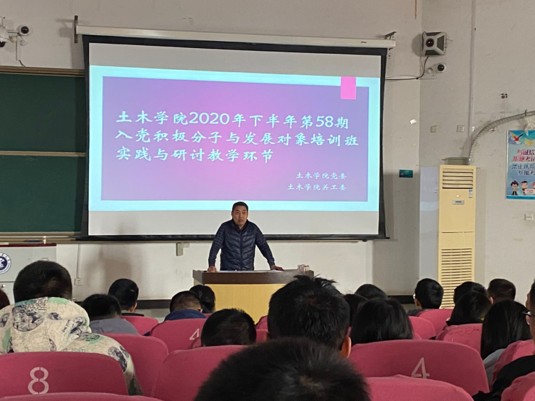 11月29日下午,土木学院2020年第58期入党积极分子与发展对象培训班实践与研讨教学活动在博二C302开展,本次研讨会邀请了土木学院关工委常务副主任周钢老师作报告,土木学院第58期全体入党积极分子与发展对象共300余人参加了本次活动,研讨会现场由土木学院关工委秘书长曹鹏老师主持。