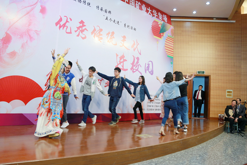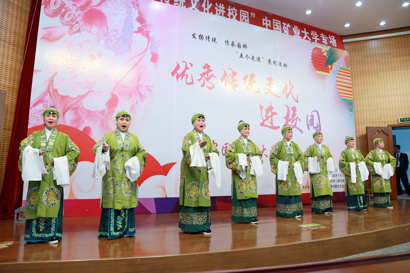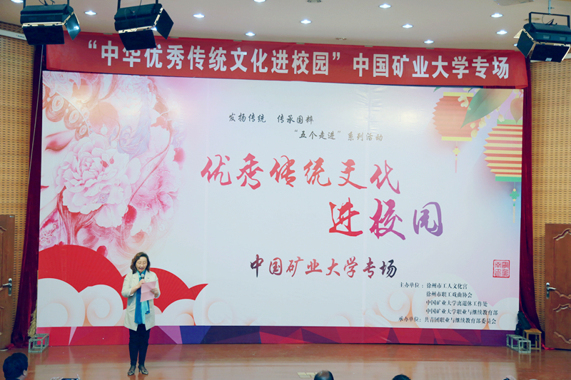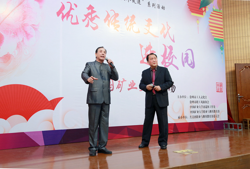 4月18日下午,由徐州市工人文化宫、徐州市职工戏曲协会、离退休工作处、职业与继续教育部主办,职业与继续教育部关工委承办的“中华优秀传统文化进校园”京剧专场文艺演出在文昌校区网络大讲堂拉开帷幕。包括离退休老同志在内的200余名师生一同欣赏了这场弘扬经典、传统再现的戏曲盛宴。