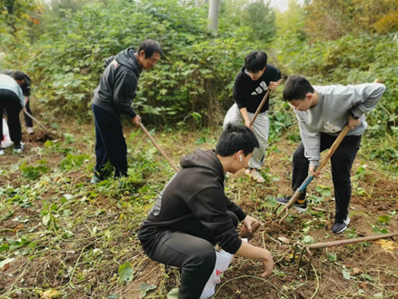 刘建光、纪承、曹炜三位老师先向大家示范了挖红薯的动作,然后分小组进行实践操作。大家先用工具将红薯藤整理干净,接着分垄开挖,分工协作,有的负责刨地,有的负责拣拾,还有的负责装袋。大家干得兴高采烈、汗流浃背、热火朝天,热闹的收获场景跃然呈现在田地间。劳动过程中,刘建光书记还向同学们讲述了红薯的由来,以及红薯的生长发育过程。经过两个小时的劳作,大家满载而归,共收获了百余斤红薯。