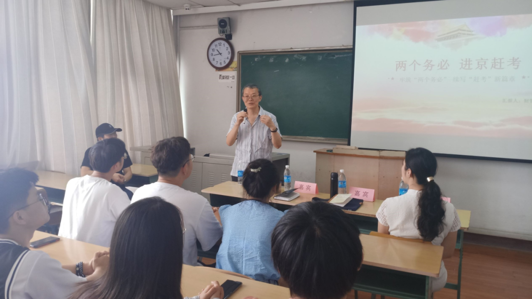 为积极教育引导青年学生坚定理想信念、站稳人民大众立场,练就过硬本,始终保持艰苦奋斗的前进姿态,投身强国伟业。2021年6月10日,财管19-2团支部和徐海学院关工委,在主楼807教室组织开展了“两个务必,进京赶考”主题团课。