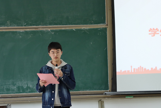王虎副书记对此次大会作了总结,他希望同学们首先要认清学生身份,聚焦主责主业;其次要珍惜学校和学院平台,提升自身综合素质;再次要坚定理想信念,提高思想政治觉悟。最后他希望学生组织围绕学风建设、心理健康等方面组织活动,提升为同学们服务的本领。