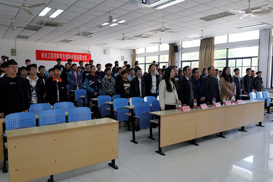 为加强学生组织学生干部队伍建设,加强各部门的交流合作,4月14日下午,机电工程学院学生组织2020-2021年度中期干部述职大会在博一楼A101举行。机电工程学院党委副书记王虎,关工委常务副主任刘圣汉,领雁辅导员杜占东,学院团委书记、2018级辅导员梁佳卉,优才计划辅导员、大学生传媒中心指导老师赵忠琦,各学生组织分管负责人以及部长参加了此次大会。
