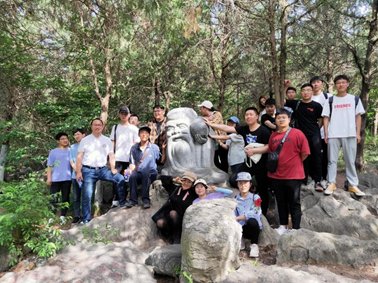随后,在曹炜老师的带领下,有幸看到泉山森林公园中不一样的地方,看到张果老倒骑驴雕像以及果老洞。曹炜老师向党员们介绍八仙之一张果老倒骑驴的故事,他说倒骑驴是告诉人们要时常看到回路,注重总结过去。在果老洞前,纪承老师讲述了历史上的道教以及世界上宗教文化进程与发展,他强调道教才是中国的传统宗教。