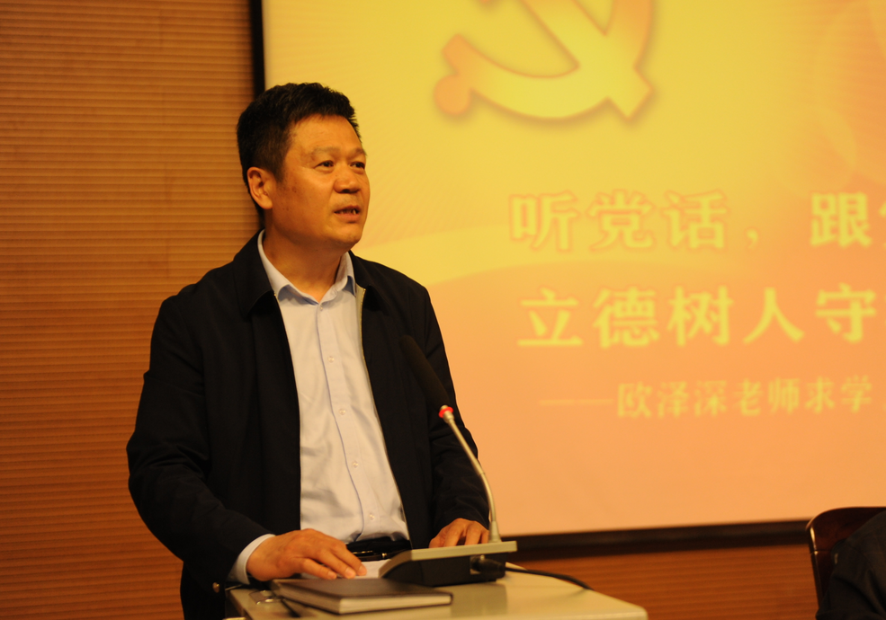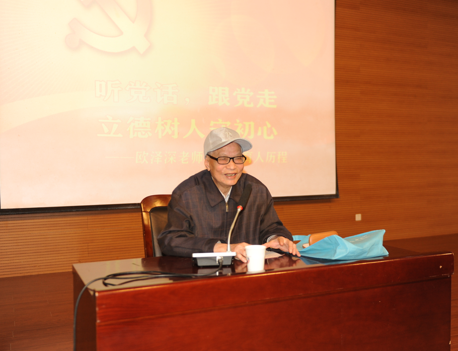 5月20日下午,化工学院党史学习教育报告会在化工楼A101报告厅举行。本次报告会邀请了学院退休老教师、原煤综合利用系主任欧泽深教授,为全院教职工和学生党员代表作题为“听党话 跟党走,立德树人守初心”的报告。报告会由学院关工委主任周长春主持。