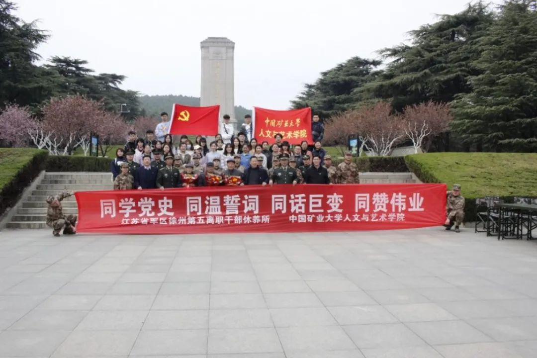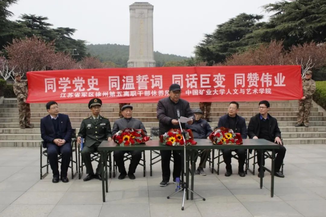 第五干休所政委唐克伟发言3月26日上午,由江苏省军区徐州第五干休所、中国矿业大学人文与艺术学院共同举办的“同学党史、同温誓词、同话巨变、同赞伟业”庆祝建党100周年活动在徐州市淮海烈士纪念碑前举行。亲历淮海战役和平津战役的茹梦武、耿尚德、郭朝武三位老干部,江苏省军区徐州第五干修所政委唐克伟、所长李新胜,人文与艺术学院党委书记、关工委主任方跃平,党委副书记、关工委副主任丁恒星,副院长李广文参加活动,第五干休工休人员、人文与艺术学院各年级30余名学生党员、预备党员积极参与此次活动。活动由徐州第五干休所所长李新胜主持。