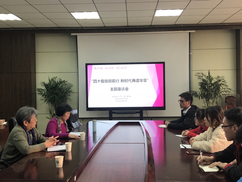为纪念改革开放四十周年和矿大在徐办学四十周年,11月27日,由信控学院关心下一代工作委员会和信控学院学生党员工作站主办的“老少同进,同心筑梦”系列活动之“四十载砥砺同行,新时代再谱华章”主题座谈会在信控学院A311会议室举行。信控学院党委书记、关工委主任吴瑜,信控学院关工委副主任王香婷,关工委委员闫毓文、翟文艳、管钰以及学生党员代表共同参加了此次座谈会。