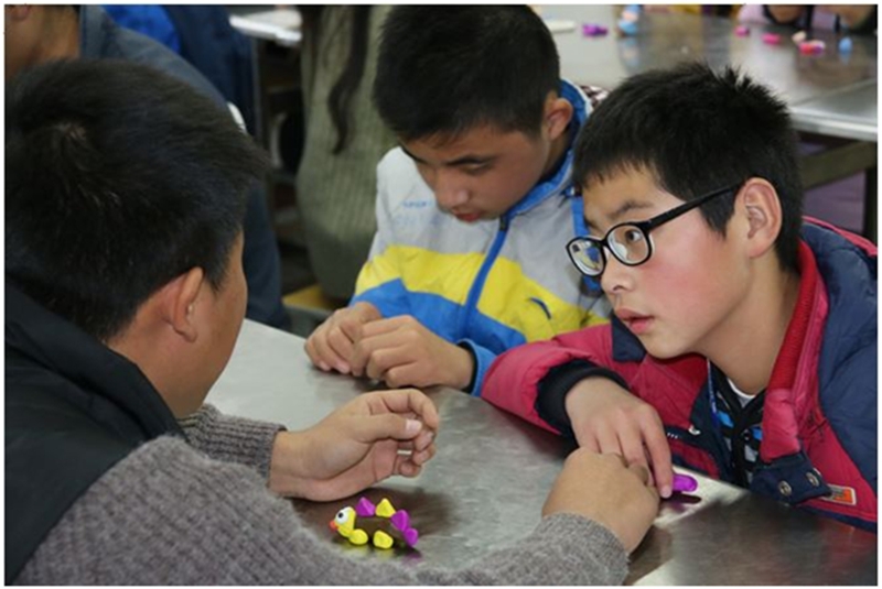 曹炜主任回顾了双方十余年的友好合作历程,高度肯定了“烛光行动”的品牌效应和育人成效,他指出,能源、材料与物理学部关工委秉承“切实关心下一代,为青少年、儿童健康成长办实事、做好事”的宗旨,尽可能地在教育教学、爱心关怀、经济资助等方面为盲部提供力所能及的帮助,这次能源学部关工委悉心为盲童准备了保暖衣物,旨在传递一份温情。大学生志愿者们还为盲童带来了零食、玩具。同时,大学生志愿者们带来软陶,与盲童一起制作手工作品。在讨论和合作之中,普通的软陶变成了一件件精美的艺术品,其中饱含了大家的心血和努力。手工制作软陶的活动为盲童带来了欢乐,同时也增进了与他们之间的交流。