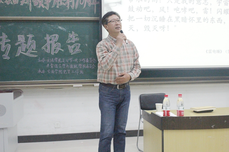 此次爱国主题报告会,庄汉新教授从文字中寻找真情,从历史中寻觅热爱,文学知识与爱国之情共襄。文法学子受益匪浅。